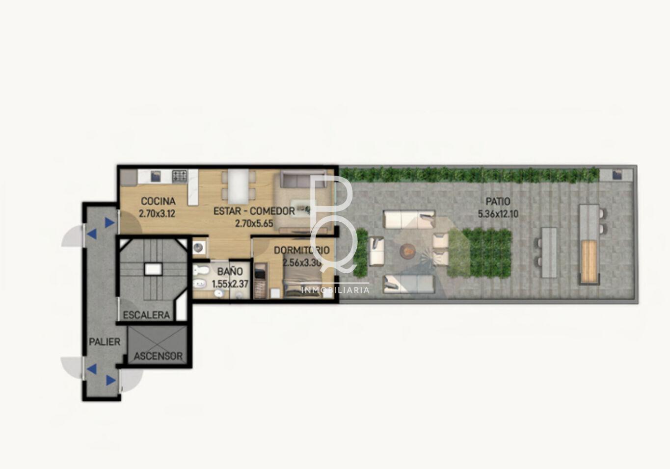 Apartamento en construcción con entrega prevista para fines de abril de 2026.Ubicado en primer piso, cuenta con patio y parrillero de uso exclusivo. La superficie total es de 108 m², de los cuales 65 m² corresponden al patio.
